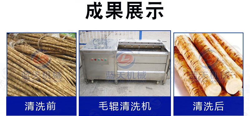麻山药清洗机可用于中药材类:天麻、蒲公英根、茯苓、丹参、黄芪、人参、牛蒡等等,采用软毛刷可以清洗掉表面泥土。